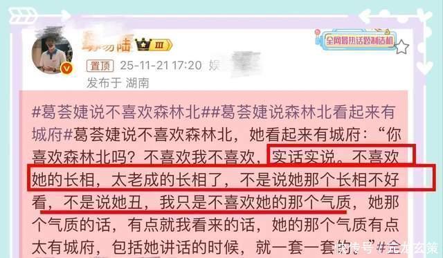 而对于汪峰的现任女友森林北,葛荟婕则丝毫没有给汪峰一丝颜面,直接在直播间坦言,不喜欢森林北,觉得这个人一直是端着的,心机很深。